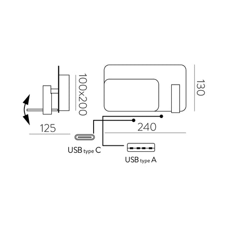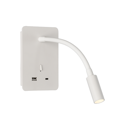 ACB Senda Aplique 16/3835 Blanco texturado, LED 3W 3000K 285lm, CRI90 , Con interruptor, Orientable, Con USB, CON USBC A3835001B