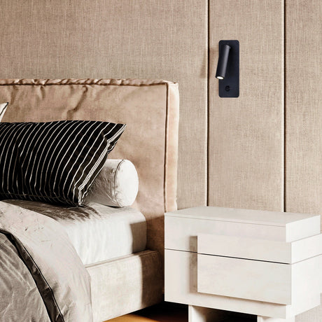 ACB Calma Aplique 16/3836 Negro Texturado, LED 6W 3000K 630lm + 3W 3000K 285lm, CRI90 , Dos interruptores, Orientable, Con USB, CON USBC A3836001N
