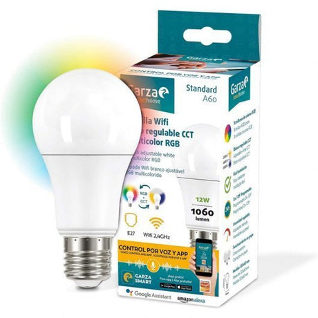 Garza 401274 Smarthome Bombilla LED WiFi CCT + RGB 12w Estandar E27 inteligente, control por voz y Alexa