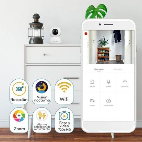 Garza 401266 Smarthome Cámara IP WIFI inteligente 360, visión nocturna, HD, iOS, Android, Alexa, Google