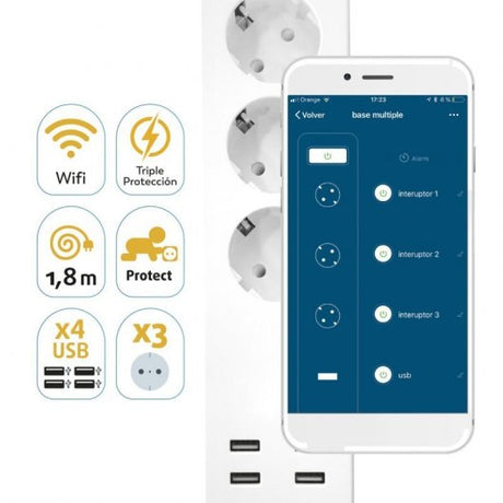 Garza 401263 SmartHome Regleta enchufe multiple inteligente wifi de 3 tomas compatible con Alexa y Google Home