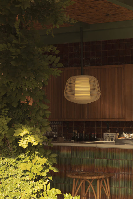 Lámpara colgante de exterior Faro Nara 85cm E27 LED beige IP65 opal 72110-155