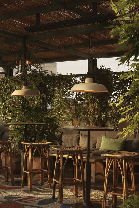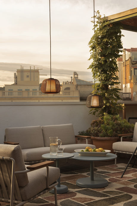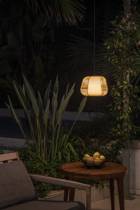Lámpara colgante de exterior Faro Nara 35cm E27 LED beige IP65 opal 72104-155