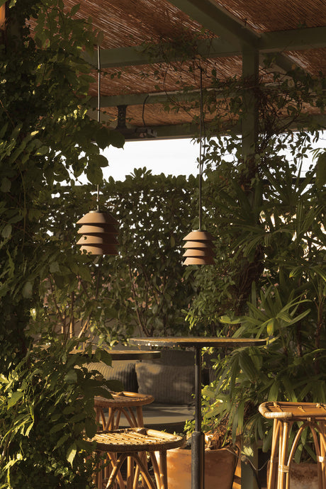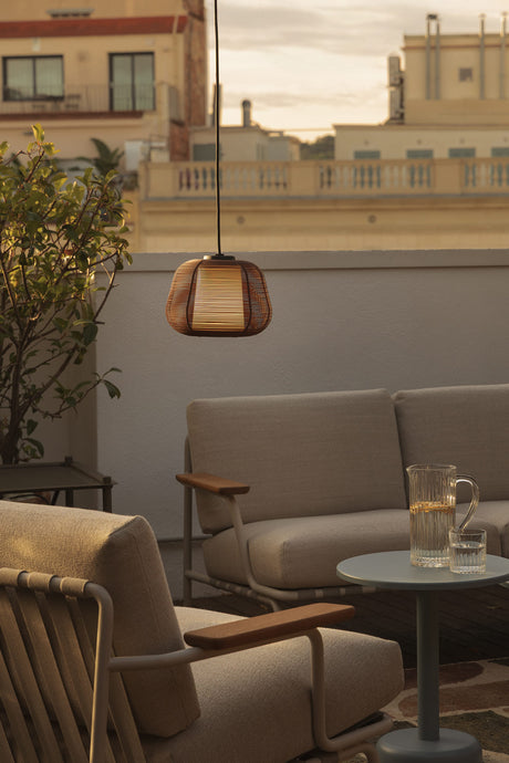 Lámpara colgante de exterior Faro Toba 24cm E27 LED marrón IP65 opal sistema 72127-165