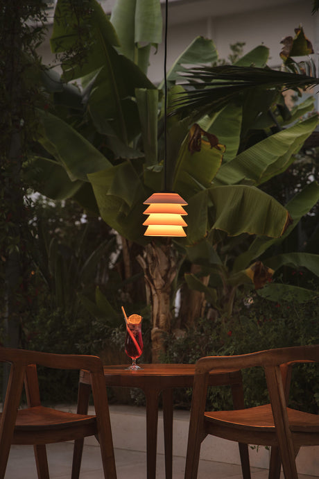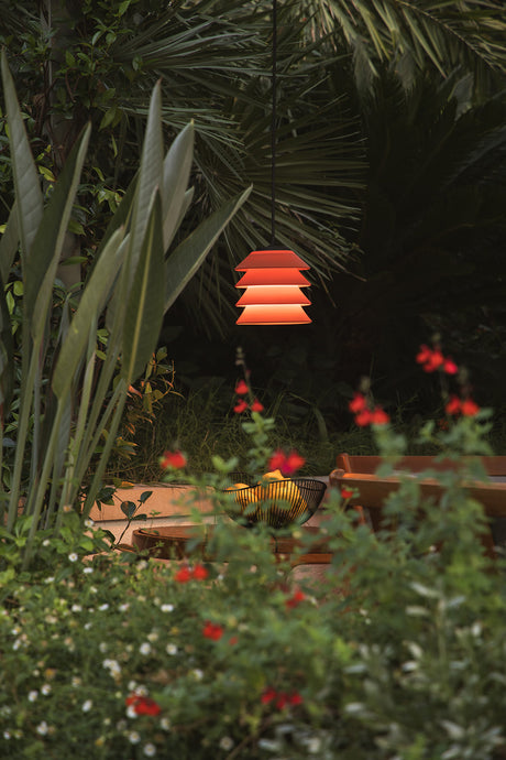Lámpara colgante de exterior Faro Narita 28cm E27 LED naranja IP65 opal sistema 72123