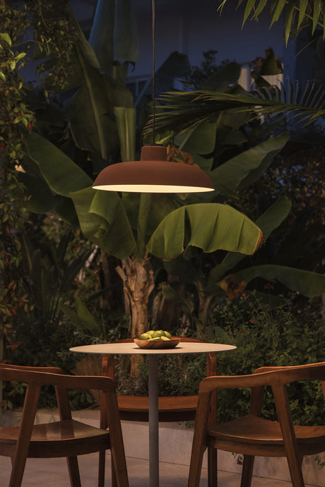 Lámpara colgante de exterior Faro Nara 45cm E27 LED marrón oxido IP65 opal 72109-157