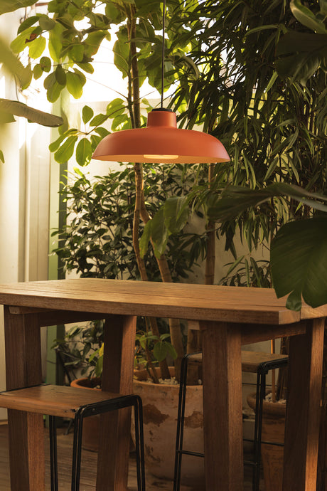 Lámpara colgante de exterior Faro Toba 24cm E27 LED naranja IP65 opal sistema 72127-166