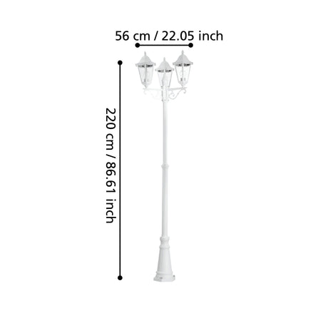 Farola de exterior EGLO Navedo blanco E27 IP44 220cm Ø56cm 93454