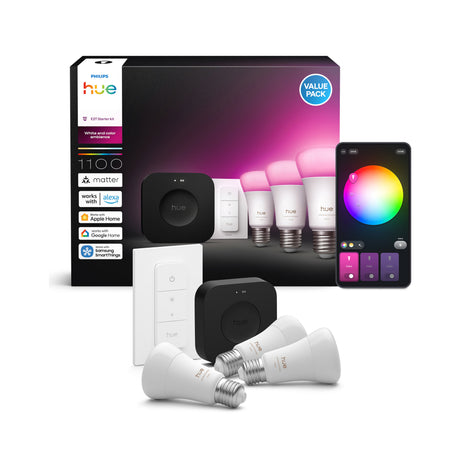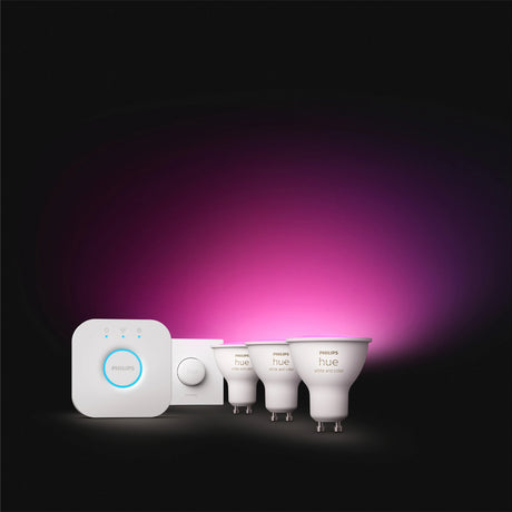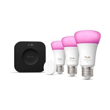 Precio normal 8999€Precio unitarioPhilips Hue White and Color Ambiance Kit de inicio Essential blanco RGBW 3W (3 uds) 8721103103635