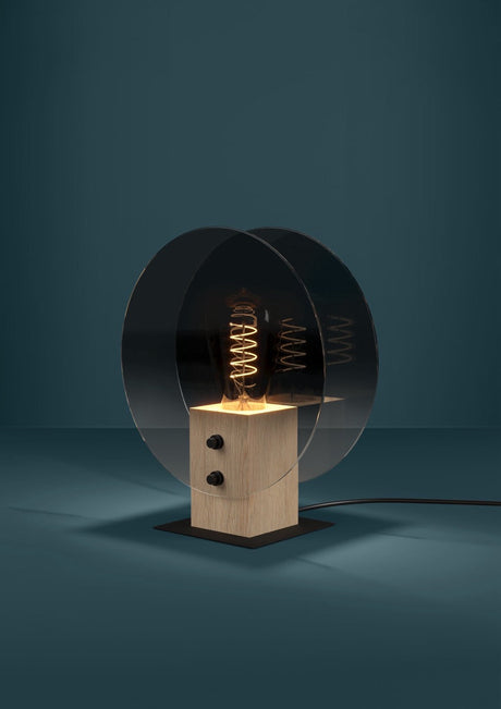 Precio normal 84900€Precio unitario /AgotadoEGLO Millena Lámpara sobremesa aceromadera vidrio vaporizado negrocafé negrogristransparente 390143