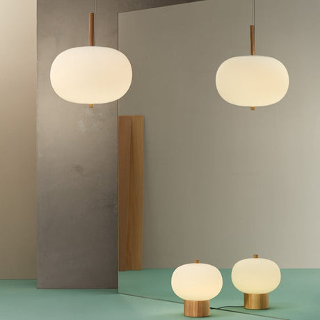 LedsC4 Ilargi Lámpara de techo colgante bolas LED madera clara y opal 00-6463-93-F9