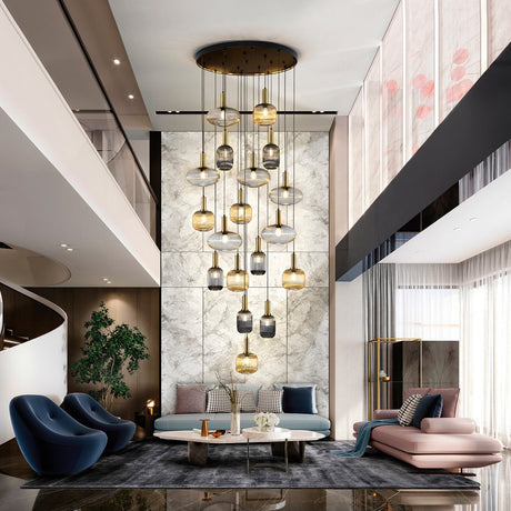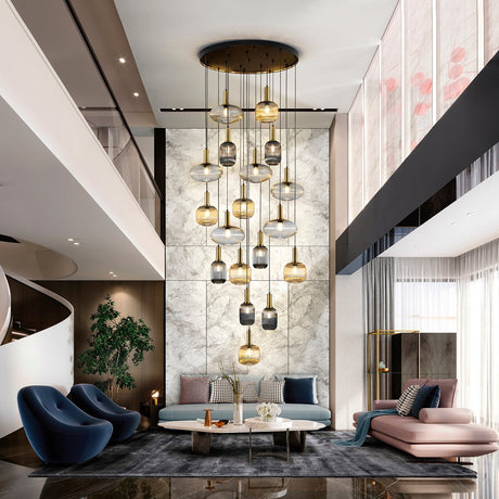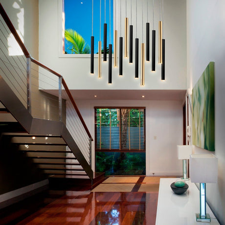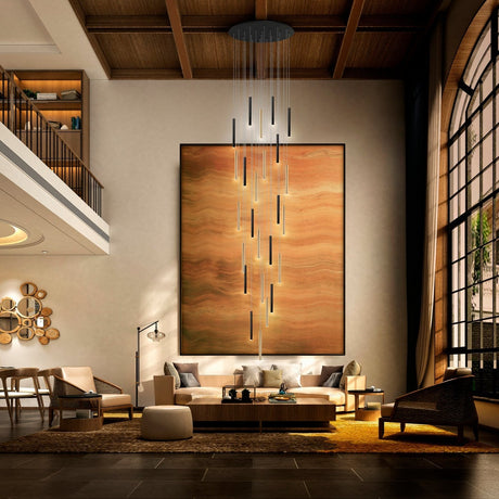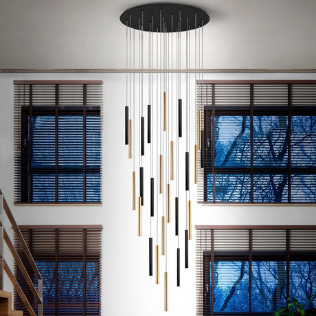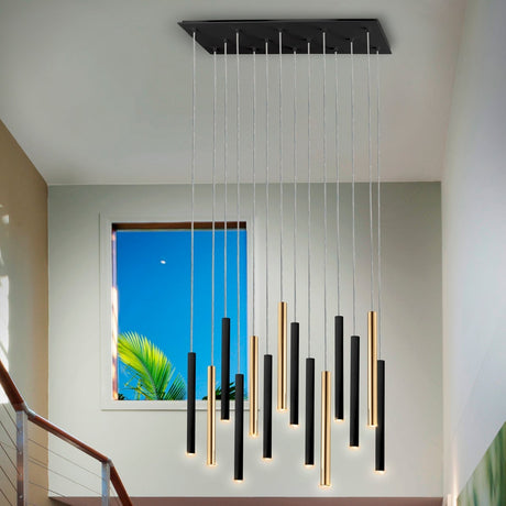 21700€Precio unitario /AgotadoSchuller Varas Lámpara de techo colgante grande 5m altura LED regulable 25 luces oro y negro 373968GD
