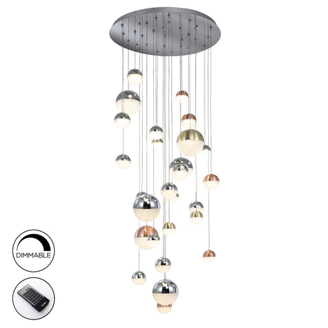 Schuller Sphere Lámpara de techo colgante 27 luces Ø80 cobre, latón satinado y cromo 793960D