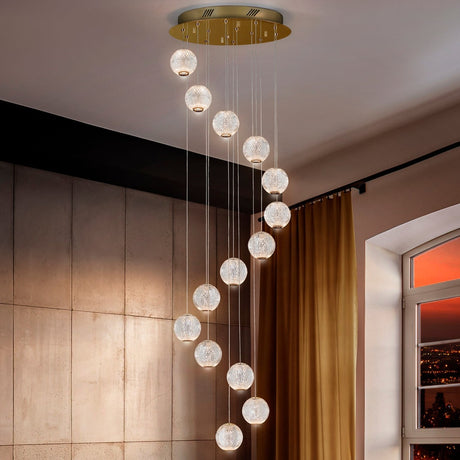 2.17000€2.28900€Precio unitario /Agotado Schuller Aquaria Lámpara de techo colgante grande 5m altura 12 luces oro mate 157322