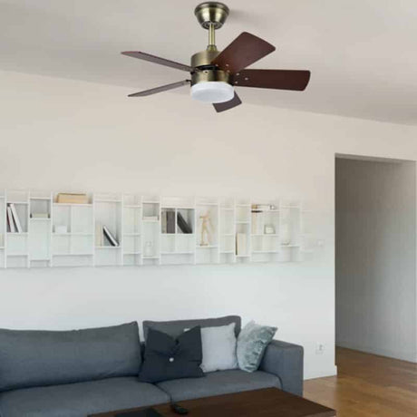 Precio normal 10799€Precio unitario /AgotadoFabrilamp Sofia Ventilador Dc 2xe27 Cuero 4 Aspas Rev.cerezo/nogal 40x107d C/remoto Temporizador 175992436