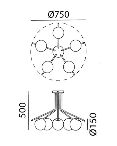 Sulion Musa Lámpara de techo con 9 bolas de vidrio y portalámparas bronce MUSA 200948