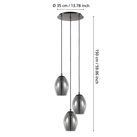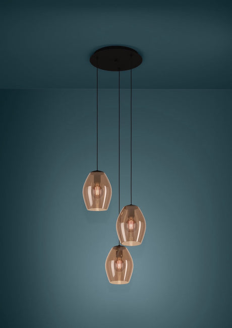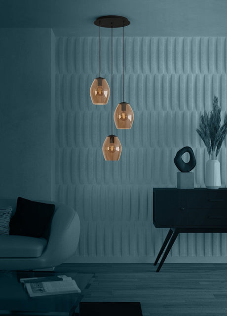 Precio normal 29900€Precio unitario /AgotadoEGLO Polverara Lámpara de techo colgante acero vidrio vaporizado negro ámbar 39538