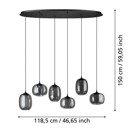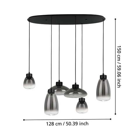 Precio normal 41900€Precio unitario /AgotadoEGLO Copillos Lámpara de techo colgante LED regulable acero vidrio vaporizado negro negro transparente 39875