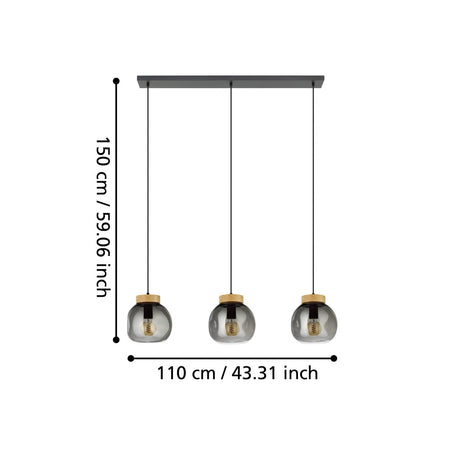 Precio normal 21000€Precio unitario /AgotadoEGLO Magacela Lámpara de techo colgante aceromadera vidrio vaporizado negro gris 390319