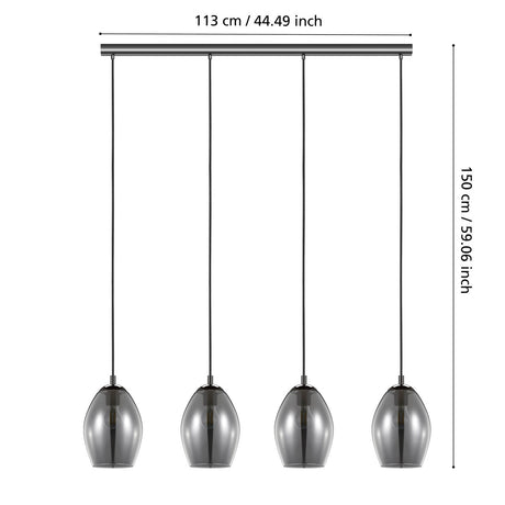 Precio normal 37000€Precio unitario /AgotadoEGLO Estanys Lámpara de techo colgante acero vidrio vaporizado nickel-negro negro transparente 39567