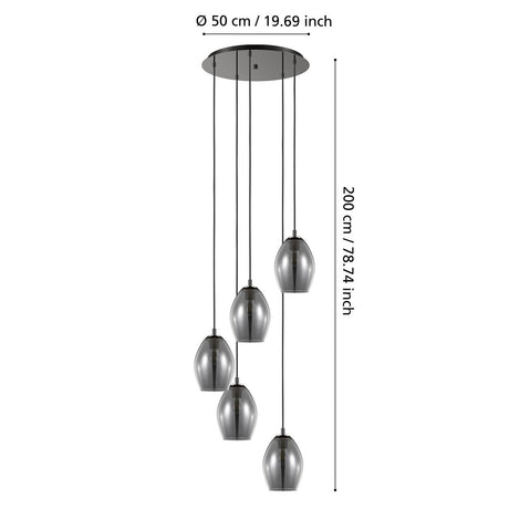 Precio normal 37900€Precio unitario /AgotadoEGLO Polverara Lámpara de techo colgante acero vidrio vaporizado negro ámbar 39539