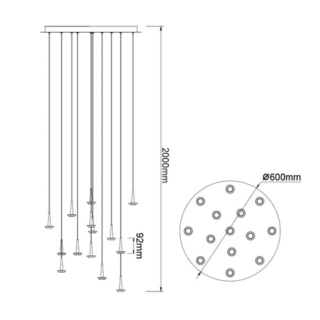 Precio normal 29299€Precio unitario /AgotadoMantra Andromeda Lámpara de techo colgante redondo 14xLED W/T cristal oro 8935