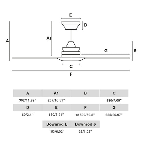 Faro ALO L Ventilador sin luz cuerpo acero y palas de madera 33728DC