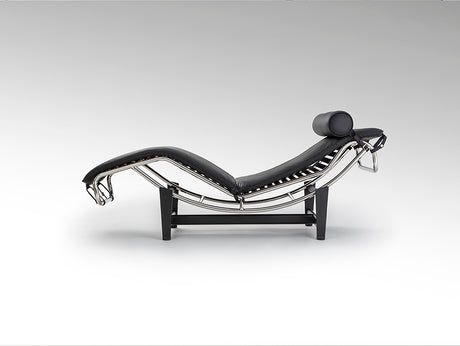 Chaise longue Schuller Leco cromo y negro piel y acero 154x56cm 458467