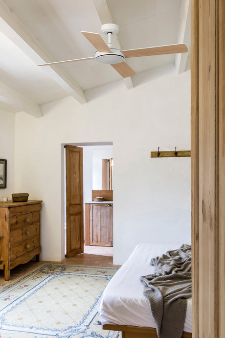 Ventilador de techo sin luz Faro Mini motor DC palas de madera blanco y madera Ø90cm 3 palas 33821