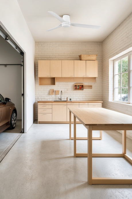 Ventilador de techo sin luz Faro Mini motor DC palas de madera blanco y madera Ø90cm 3 palas 33833