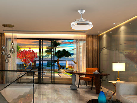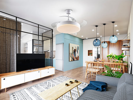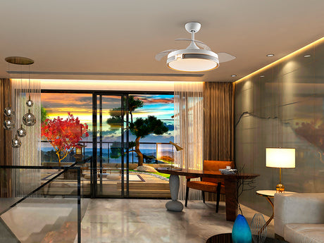 Ventilador de techo plafón retráctil Schuller Enzo LED blanco CCT regulable con mando 196529D