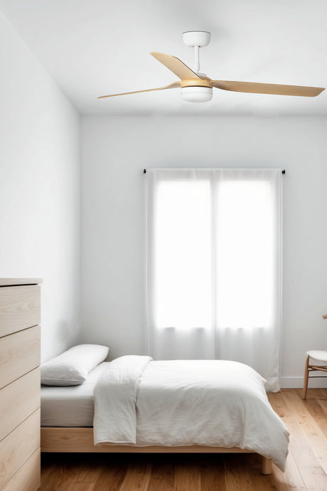 Ventilador de techo con luz Faro Punt motor DC LED arce 3000-6500K CCT Ø132cm 3 palas 33829-1TW