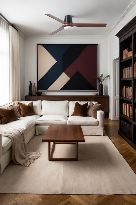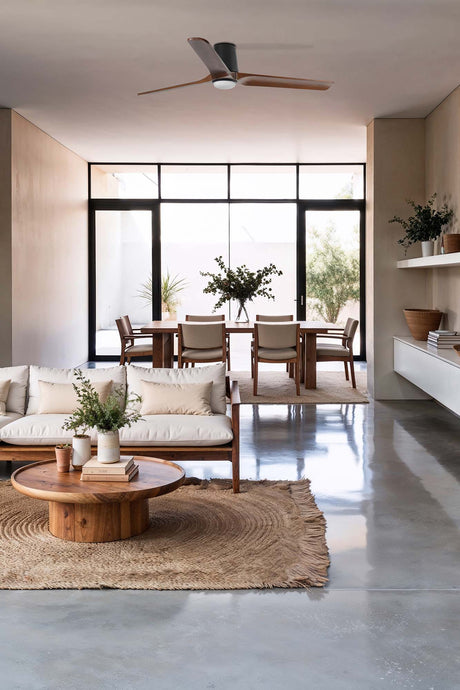 Ventilador de techo con luz Faro Klim motor DC palas de madera LED nogal oscuro Ø92cm 342781B