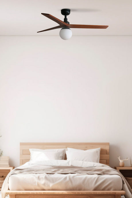 Ventilador de techo con luz Faro Klim motor DC palas de madera LED nogal oscuro Ø150cm 342761B