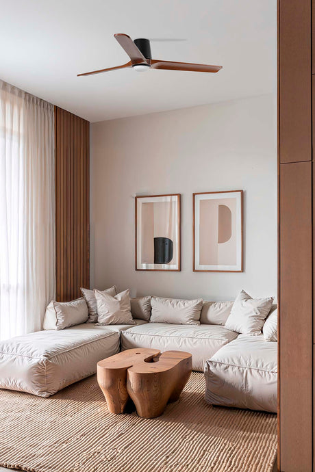 Ventilador de techo sin luz Faro Gotland motor DC palas de madera nogal Ø132cm 3 palas 33447WT