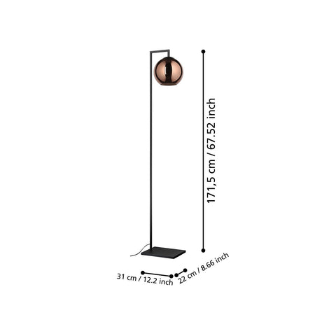 14900€Unit price /UnavailableEGLO Cordoba Lámpara de pie acero vidrio vaporizado negro colores de cobre 390253