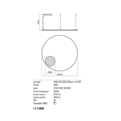 Sale price 31320€ Regular price 34800€Unit price /Unavailable Redo Orbit Lámpara colgante 100cm LED regulable 3000K 68W