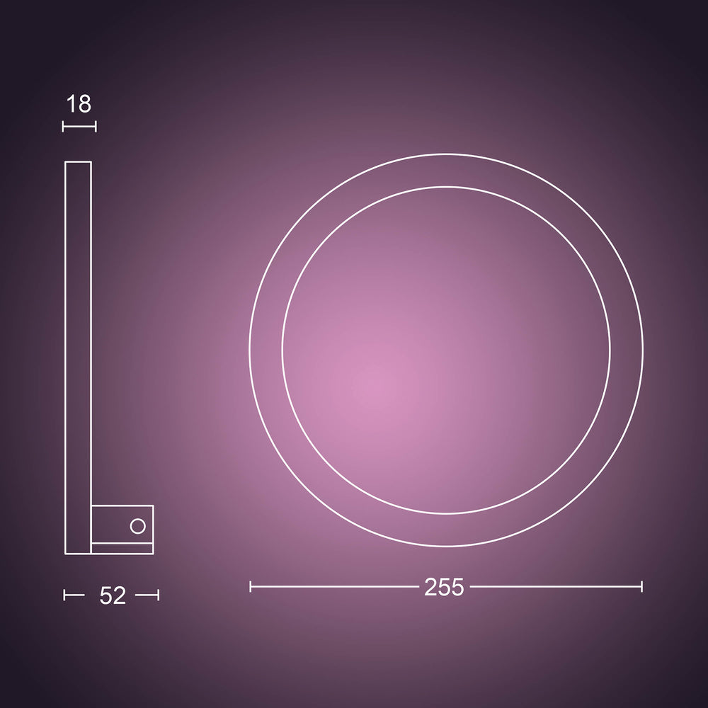 El aplique mural Sana tiene un elegante diseño y un efecto de iluminación indirecta. Crea la atmósfera perfecta con cualquier tonalidad de blanco o con luz de color. Funciona como una lámpara independiente o como parte de tu sistema de iluminación inteligente con Hue Bridge.