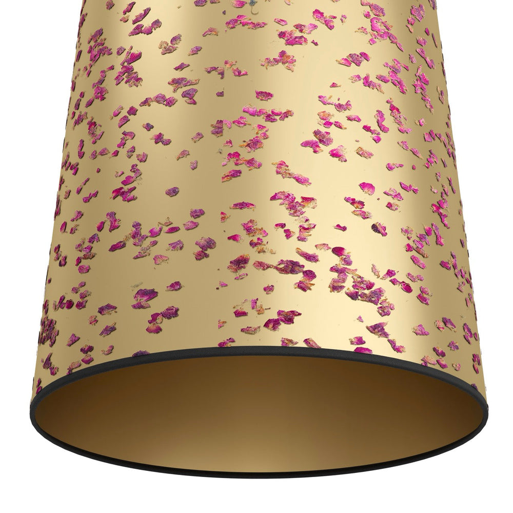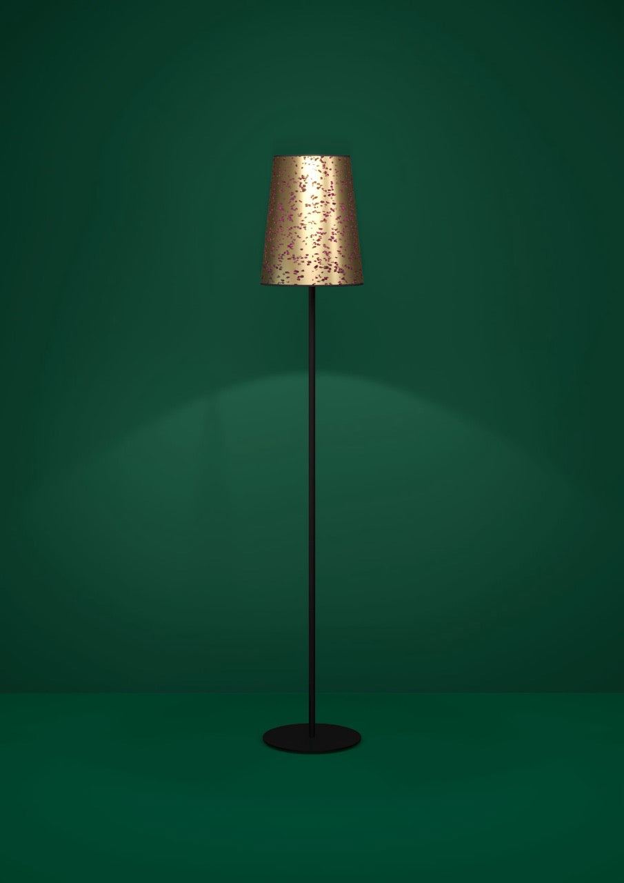La lámpara de pie Castuera 390295 de EGLO combina acero / papel con pétalos de rosa con acabado negro / dorado, rosado. La lámpara CASTUERA está fabricada en materiales sostenibles. Tiene una pantalla de papel dorado lleva adheridas delicadas flores de rosas. Los pétalos de rosa se recogen en Francia, se secan en Tirol y se aplican en el papel mediante un cuidadoso trabajo artesanal. Su aspecto natural y al mismo tiempo elegante de la luminaria, crea un espacio de naturaleza en cada habitación. La bombilla no está incluida. La lámpara es adecuada para bombillas con casquillo E27.