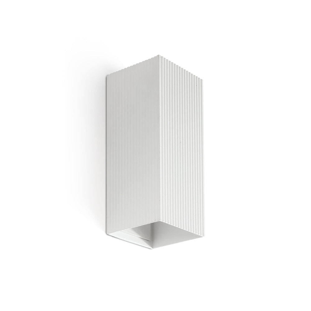 LUNE es un aplique de pared con acabado estriado en blanco proporciona una solución de iluminación eficiente y funcional, añadiendo un detalle visual interesante y moderno.