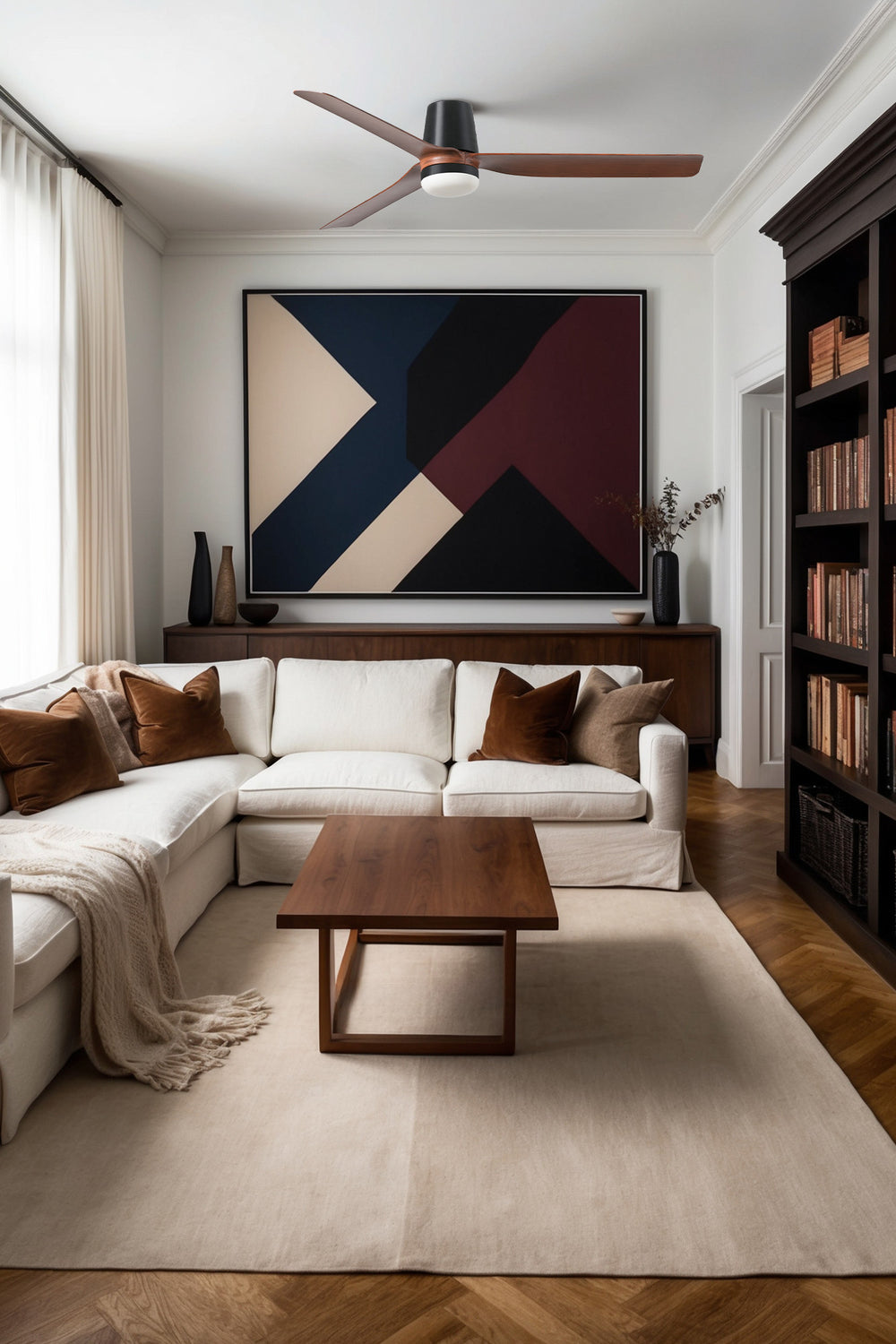 Ventilador de techo con luz Faro Punt motor DC palas de madera LED nogal 3000-6500K CCT Ø132cm 3 33831-1TW