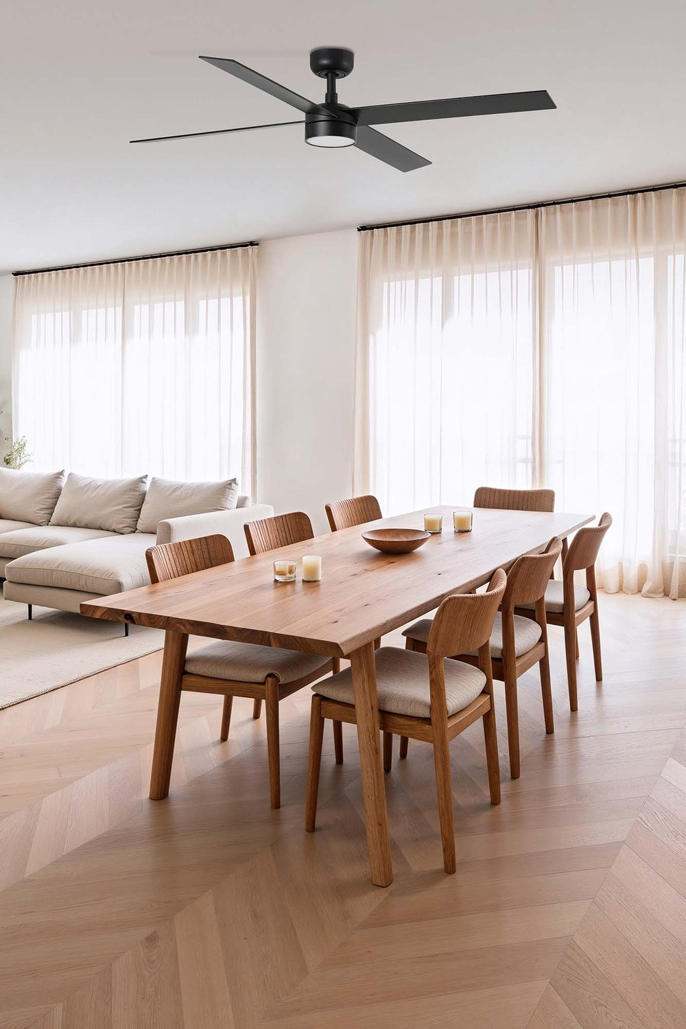 RUDDER L es un ventilador de techo blanco diseñado por Faro Lab ultra compacto. Sus palas son reversibles, permitiendo escoger entre un acabado completo en blanco o una combinación de blanco y acabado en fresno.