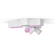 Obtén una iluminación de ambiente y funcional con una sola luminaria. La Centris blanca dispone de un plafón fijo y tres focos cuyo ángulo se puede ajustar de forma individual. Ajusta cada luz en la luminaria con cualquiera de los millones de colores disponibles para lograr un aspecto realmente exclusivo.