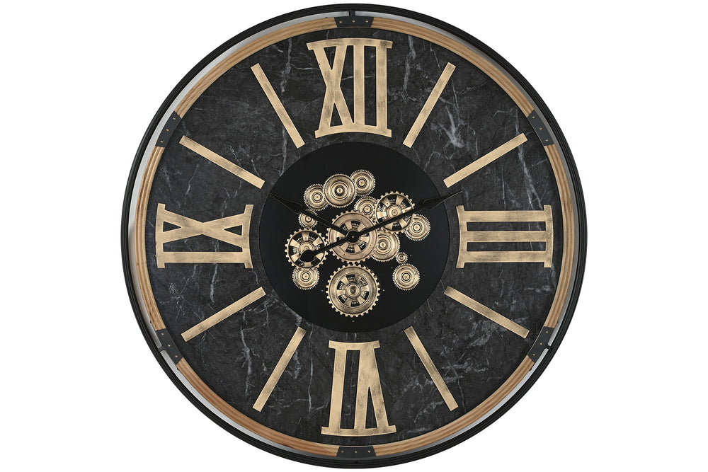 Este reloj de pared es una pieza decorativa de gran formato que combina metal negro con detalles en dorado y cristal, aportando un aire sofisticado y moderno. Con un diámetro de 127 cm, se convierte en el protagonista de cualquier estancia, ideal para ambientes tipo loft o decoraciones contemporáneas. Su mecanismo silencioso lo hace práctico y agradable en espacios de uso diario.
