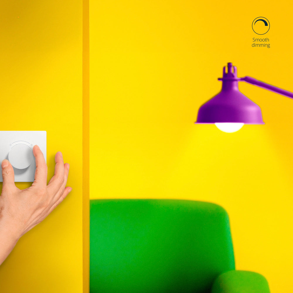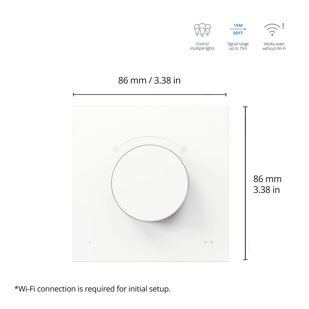 Esto es lo que necesitas para instalar el interruptor giratorio inteligente WiZ: ¡nada! Monta la base compacta en un lugar conveniente y, a continuación, coloca un interruptor de luz que se adapte a los interruptores existentes. La placa magnética se desmonta fácilmente para controlar la iluminación de forma portátil e inalámbrica en cualquier lugar. Utiliza el mando giratorio para un encendido y apagado rápidos y una atenuación suave, o toca el panel para cambiar entre tus escenas de iluminación favoritas. El interruptor giratorio inteligente contiene una batería de litio recargable por USB para que nunca te quedes sin batería. Un discreto indicador LED en forma de anillo te avisa cuando las luces están en uso o cuando hay que recargar la batería. Confía en WiZ para llenar tu vida de luz... ¡nada más sacarlo de la caja!