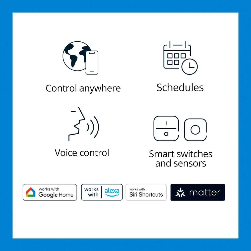 Compatible con: Alexa, Echo, Google assistent, IFTTT, Klikaanklikuit, Samsung Smartthings