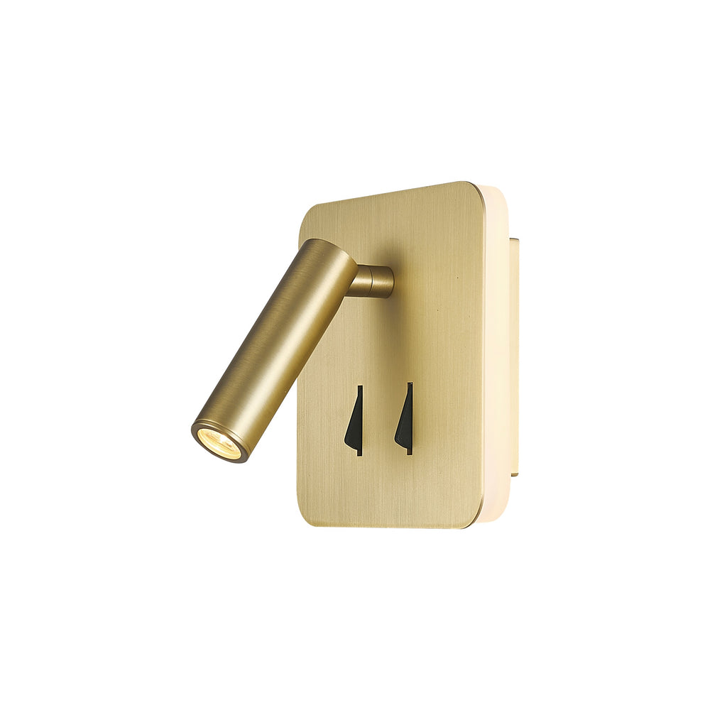 3+6W 3000K LED wall light in golden color (gold). Made of acrylic material