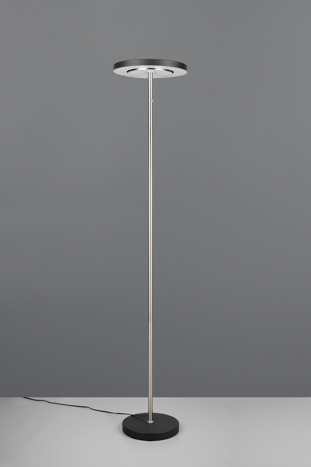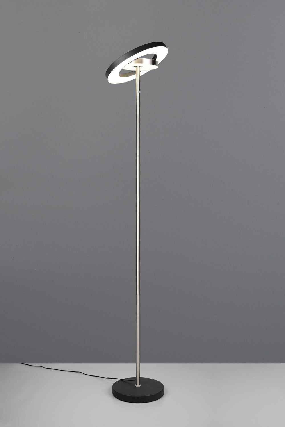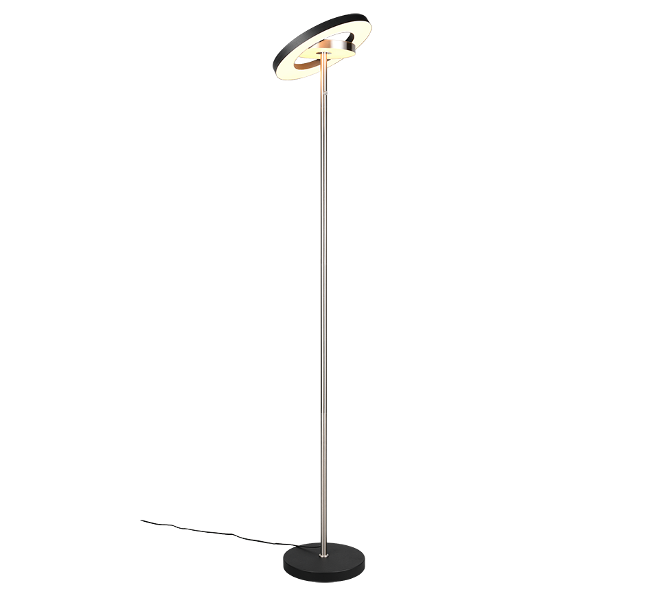 Ilumina con elegancia con la lámpara de pie Trio Guano en níquel mate, una luminaria que combina diseño contemporáneo y tecnología LED.