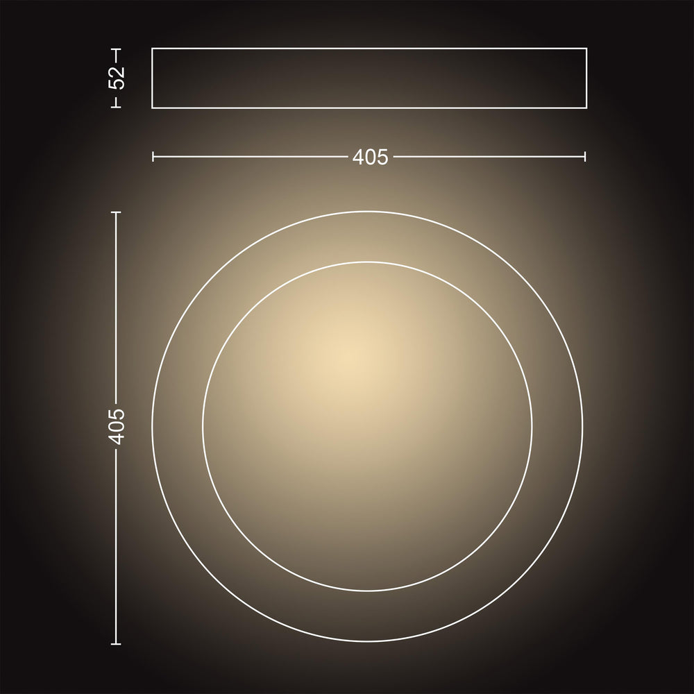 El plafón Adore de Philips Hue White Ambiance te permite leer, relajarte, darte energía y concentrarte con la luz adecuada a lo largo del día. Controla al instante la luminaria con el Hue Dimmer switch incluido o la aplicación Bluetooth. Conéctate a un Hue Bridge para descubrir más características de iluminación inteligente.