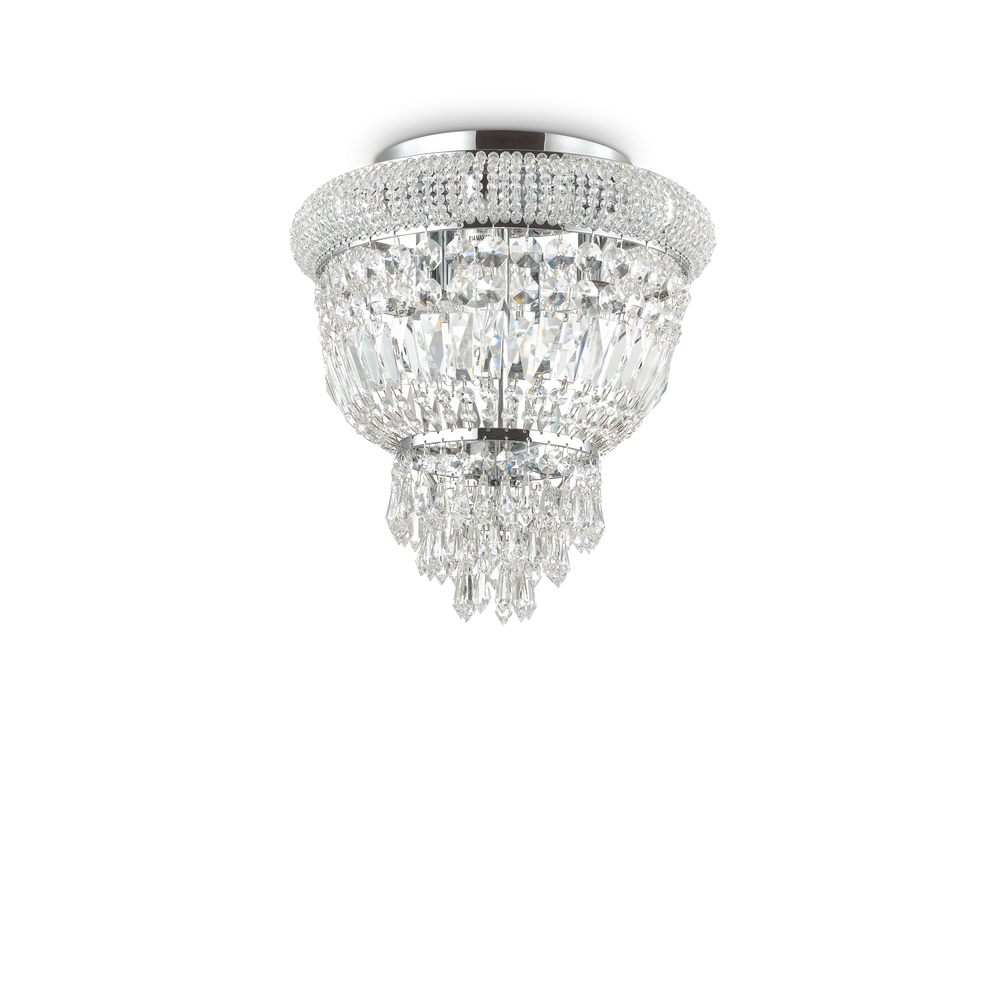 El plafón de techo Dubai de Ideal Lux en acabado cromo, fabricada en metal, cristal, cerámica, combina el diseño italiano contemporáneo con prestaciones excepcionales.